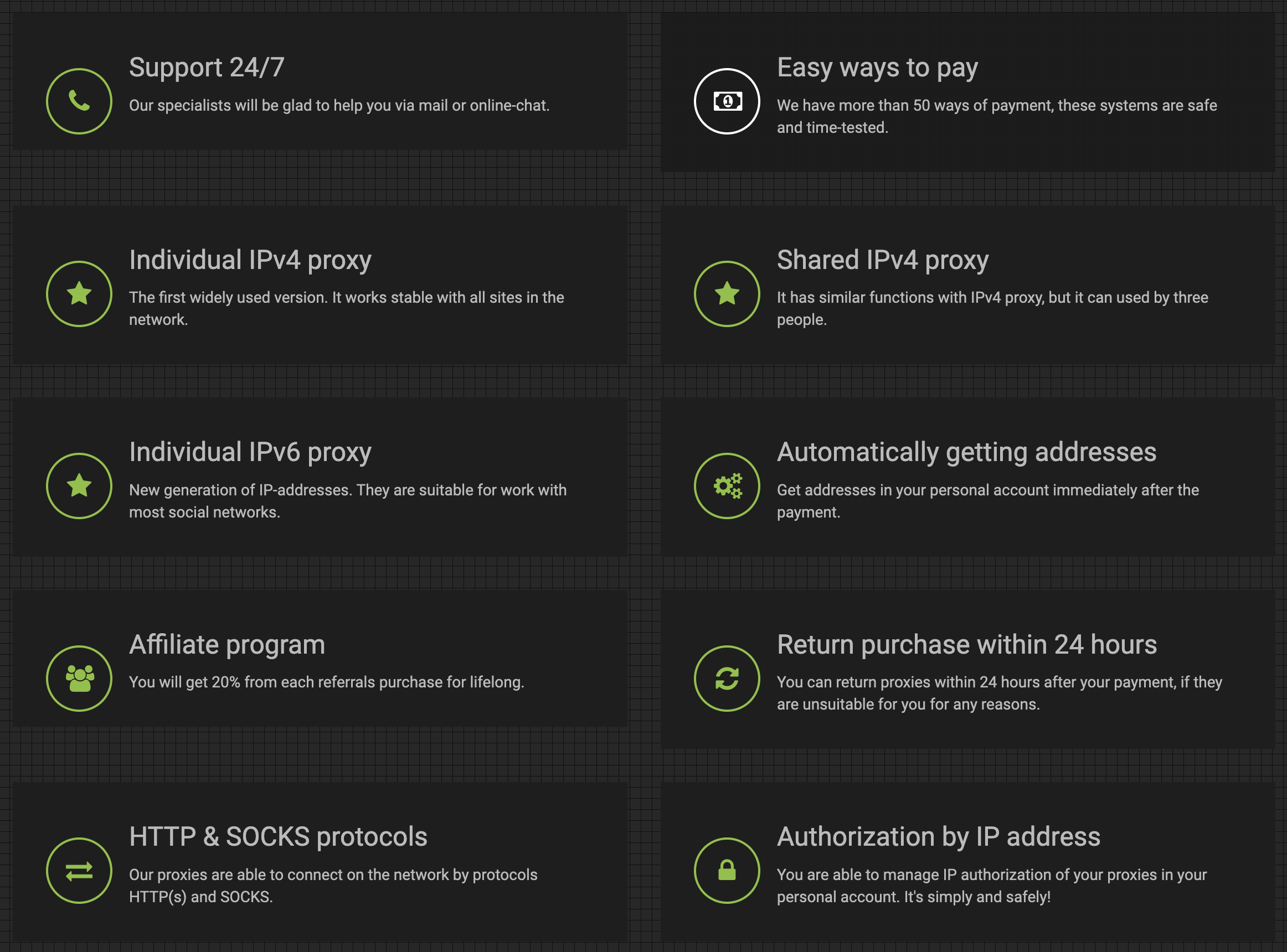 - Refund for non-working proxy servers;