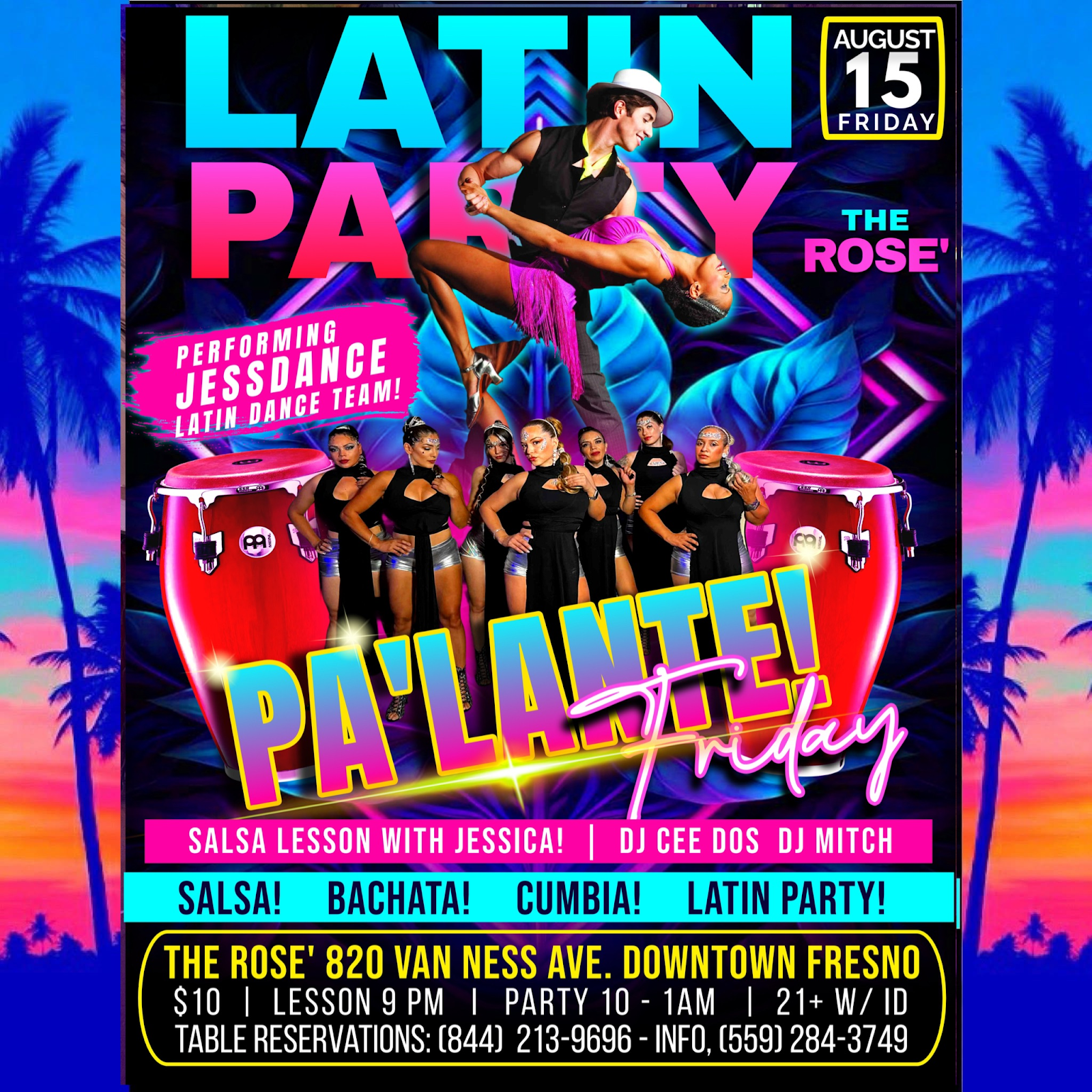 Color scheme: dark tones (black, dark blue, burgundy) with bright accents — red, pink, purple.