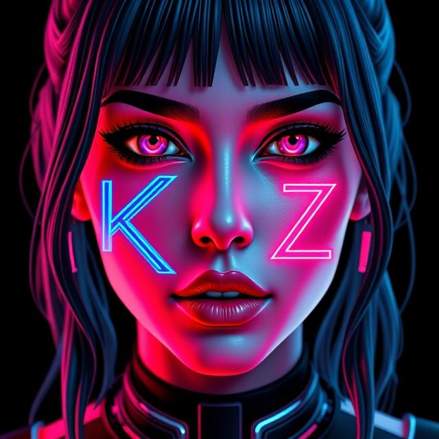 Color scheme: dark palette — black, gray, dark blue, with neon accents (green, red).