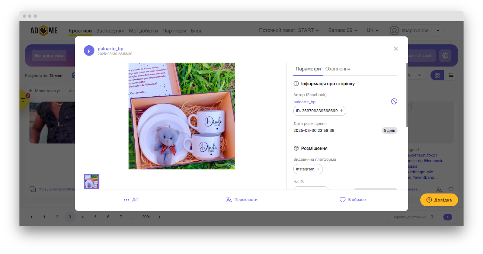 Use a spy tool like Adheart to see which creatives are currently running in your niche, what formats and messages are working, and how your ads compare. This helps you adapt your ideas to what’s proven to convert.