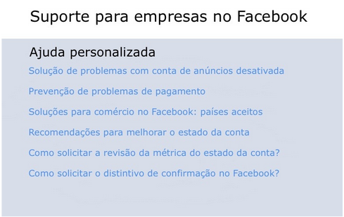 Acesse a página oficial no endereço https://www.facebook.com/business/help/support. Aqui você encontrará respostas pré-definidas para perguntas frequentes dos usuários. Não é possível enviar um e-mail separadamente.