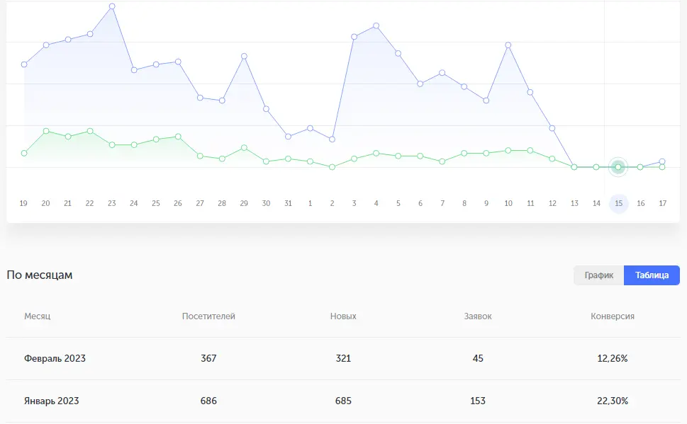 ? Até 18 de fevereiro de 2023, 45 pessoas agendaram consultas, 29 pessoas compareceram, 8 pessoas pagaram por uma área por 180€ e 2 pessoas pagaram por duas áreas por 330€. No total, as vendas somaram 2100€. Uma das mulheres que solicitou o serviço está interessada em fazer um curso de maquiagem permanente por 1800€.