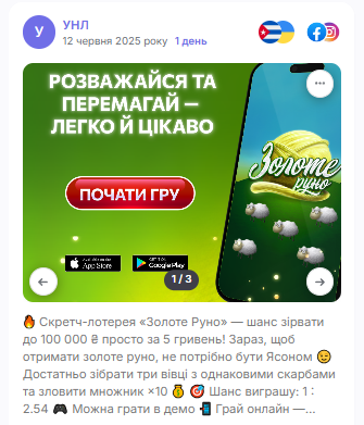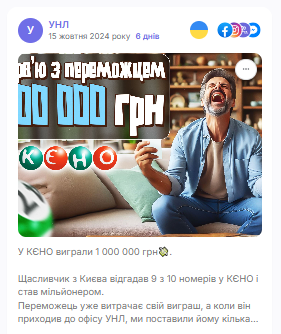 «Мешканець [місто] виграв 43 000 грн, граючи вдома»