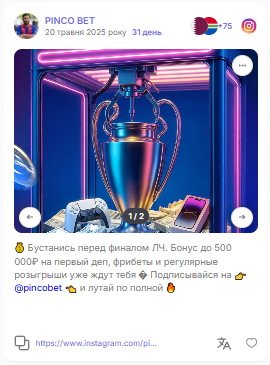 Гемблінг — це вертикаль емоцій: адреналін, азарт, легкі гроші, удача. Тут важливо влучити у мотивацію зіграти просто зараз, без складних умов. Найчастіші варіанти подачі: