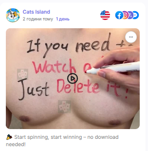 Ще одна особливість арбітражної реклами — прихована суть. Часто використовується механіка «не кажи — натякни». Така подача викликає інтерес і залучення, а ще дозволяє обходити обмеження та цензуру рекламних мереж.